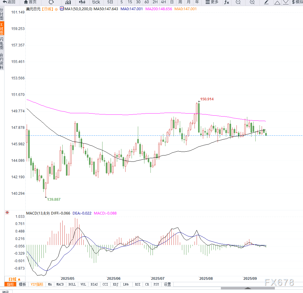 反之,若短线出现反弹,148.00为首个阻力位,其上方148.75(200日均线)将是多空分水岭。一旦突破,可能引发空头回补,推动汇价重新站上149.00区域。